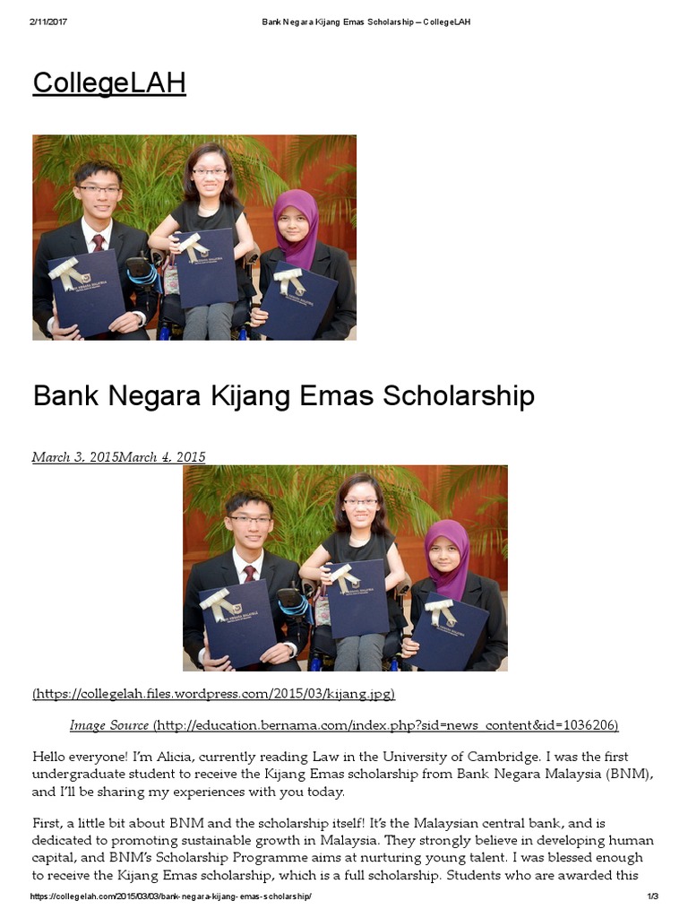 The bank negaras kijang scholarship recipients will have access to the best learning experience at top universities per the banks list. Ad Reduce College Tuition- Just 1 Form 3 Min 100s of Scholarships - Apply Now. Download View Bank Negara Kijang Emas Scholarship Collegelah as PDF for free.